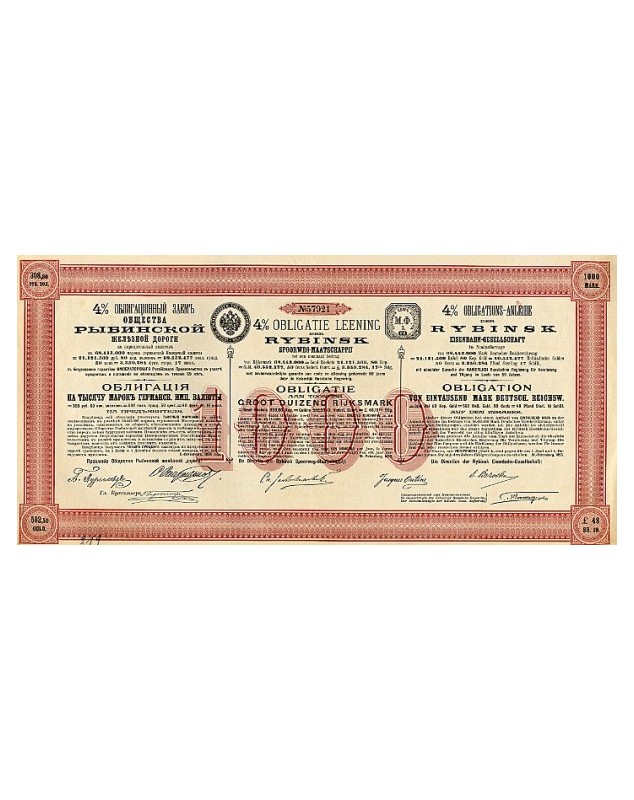 Obligation 4% de 1000 Mrk - St-Pétersbourg 1895