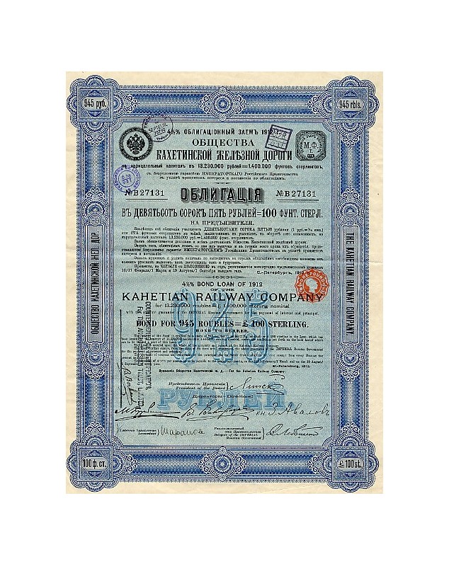 The Kahetian Railway Company - Emprunt de 4,5% 1912