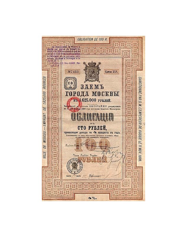 Ville de Moscou - Emprunt 4% d'1,625 million de Rbl, Série 25