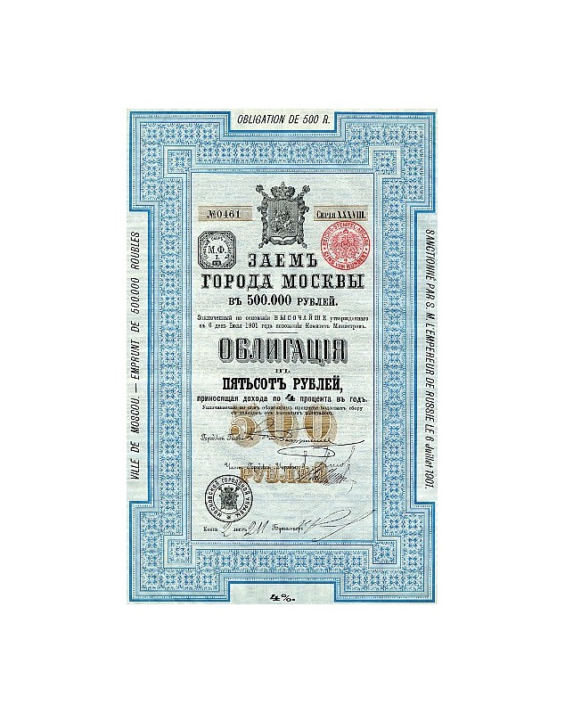 Ville de Moscou - Emprunt 4% de 500.000 Rbl, Série 38