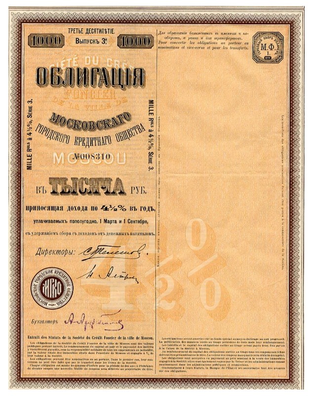 Obligation de 1000 Rbl 4,5% - Moscou