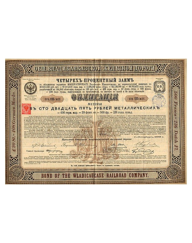 Obligation 4% de 125 Rbl - St-Pétersbourg 1885
