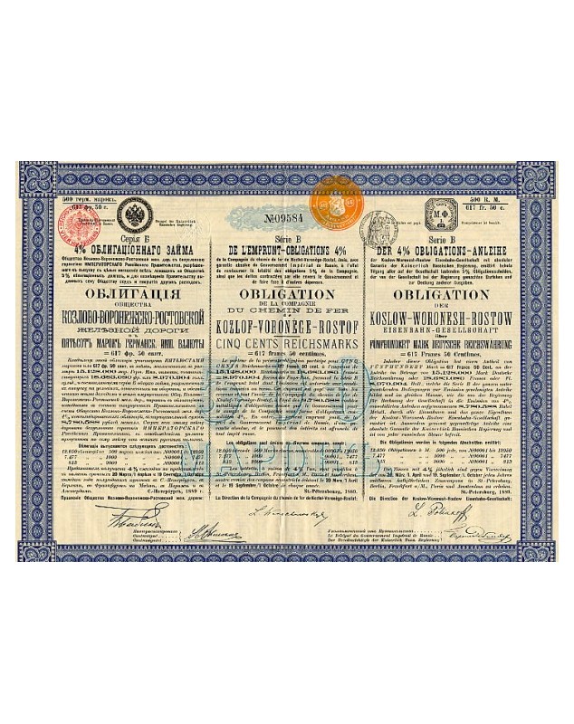 Cie du Chemin de Fer de Kozlof-Voronège-Rostof - Emprunt 4%
