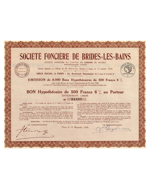 Bon hypothécaire de 500F à 6% - Paris 1930