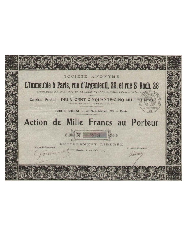 S.A. de l'Immeuble à Paris, Rue d'Argenteuil, n°25, et rue St-Roch, n°28