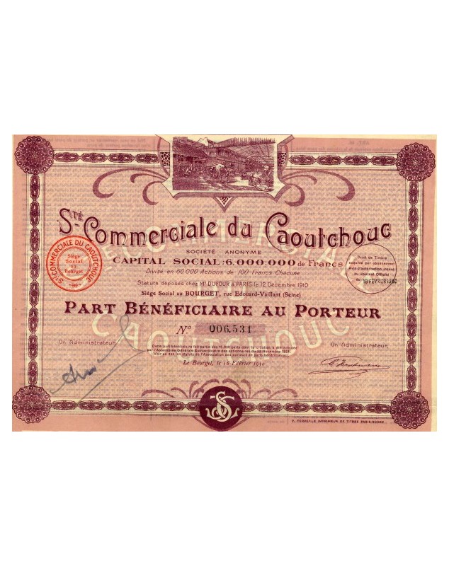 Part Bénéficiaire au porteur émise en 1930. Siège social au Bourget, rue Edouard Vaillant.