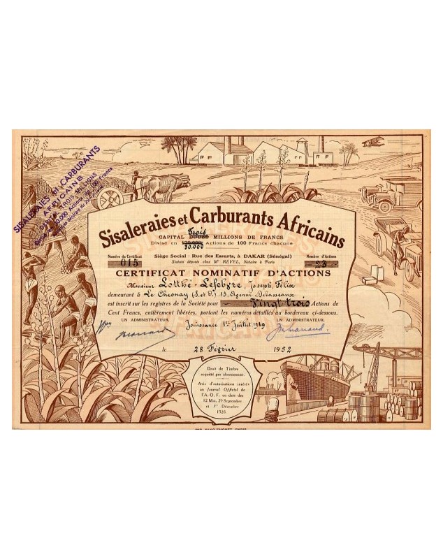 Certificat Nominatif de 23 Actions - Dakar 1952.