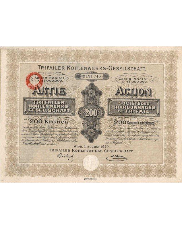 Titre en langues allemande (Trifailer Kohlenwerks-Gesellschaft) et française.