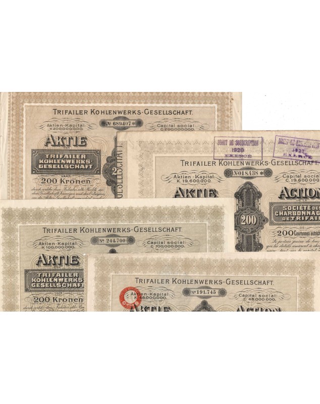 Société des Charbonnages de Trifail (Slovénie) Lot de 4 (1913,1920,1922,1923)