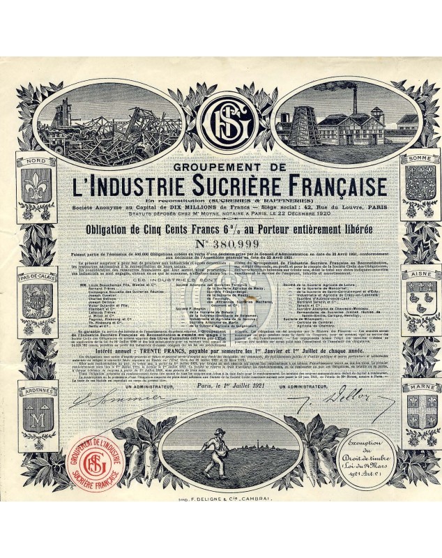 Obligation de 500F 6% - Paris 1921