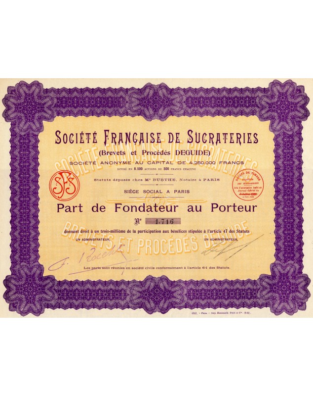 Sté Française de Sucrateries (Brevets et Procédés de Sucrateries)