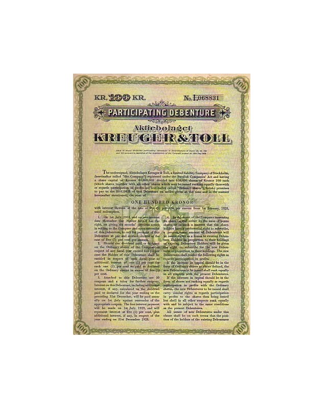 Peu avant le krach, Kreuger avait émis des milliers d'obligations qui furent très populaires en Suède. De nombreux ménages y avaient investi leurs économies et perdirent toute une vie d'économies lors du krach de l'empire Kreuger.