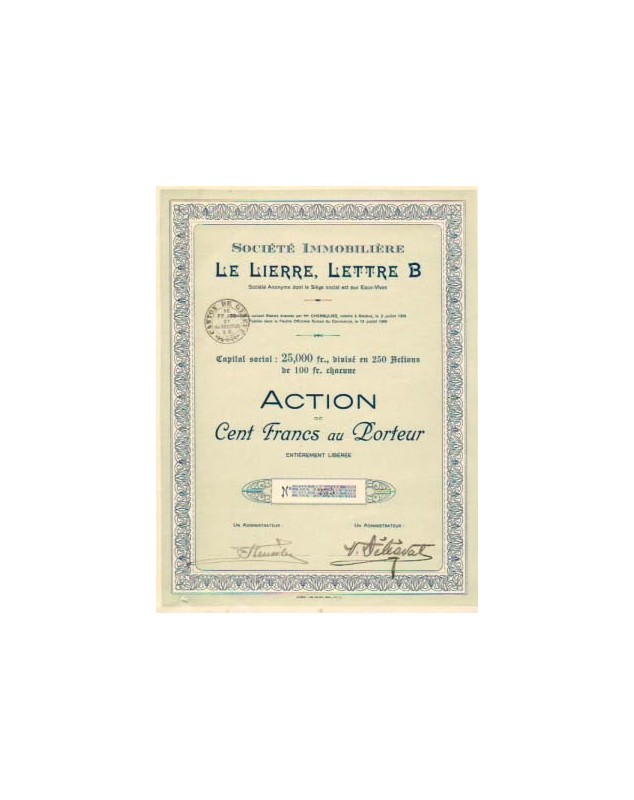 Action 100F - Eaux-Vives 1909 - Emission 250