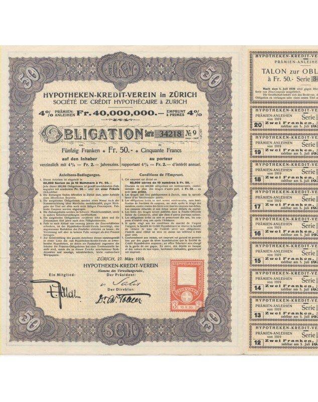 Obligation de 50F (plusieurs séries disponibles) - Zürich 1919