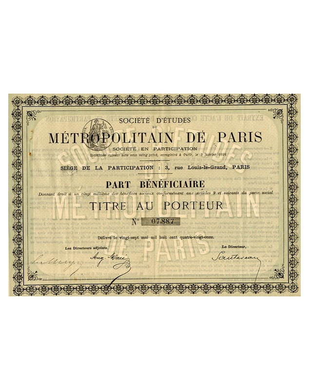 Part bénéficiaire - Paris 1891