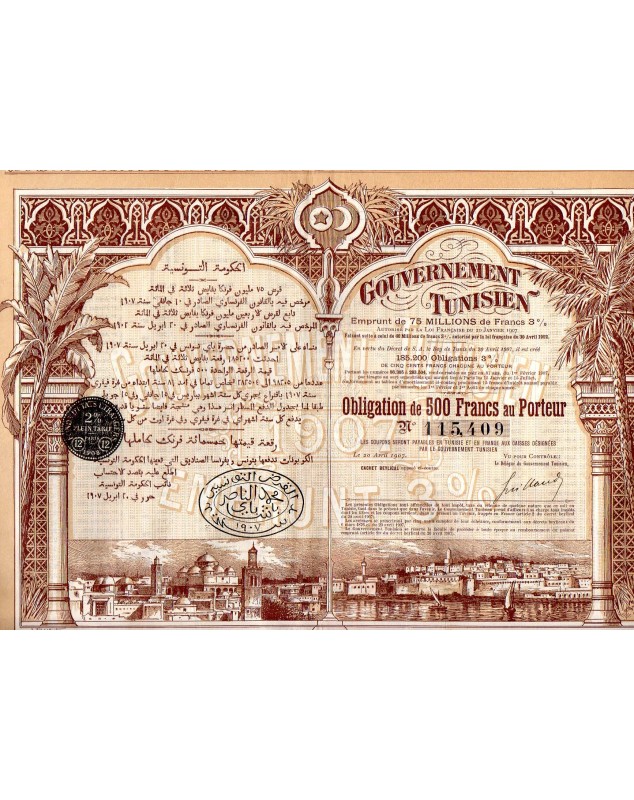 Obligation de 500F - Emprunt de 75 millions de Francs 3%, 1907.