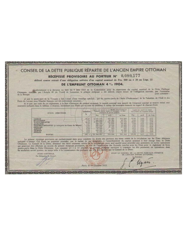 Conseil de la Dette Publique Répartie de l'Ancien Empire Ottoman - Emprunt Ottoman 4% 1904