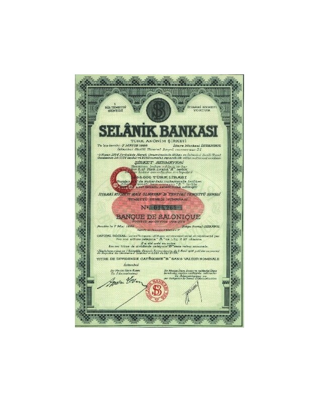 Titre de Dividende Cat. ''B'' - Istanbul 1934