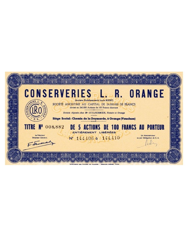 Titre de 5 Actions de 100F - Orange (Vaucluse)