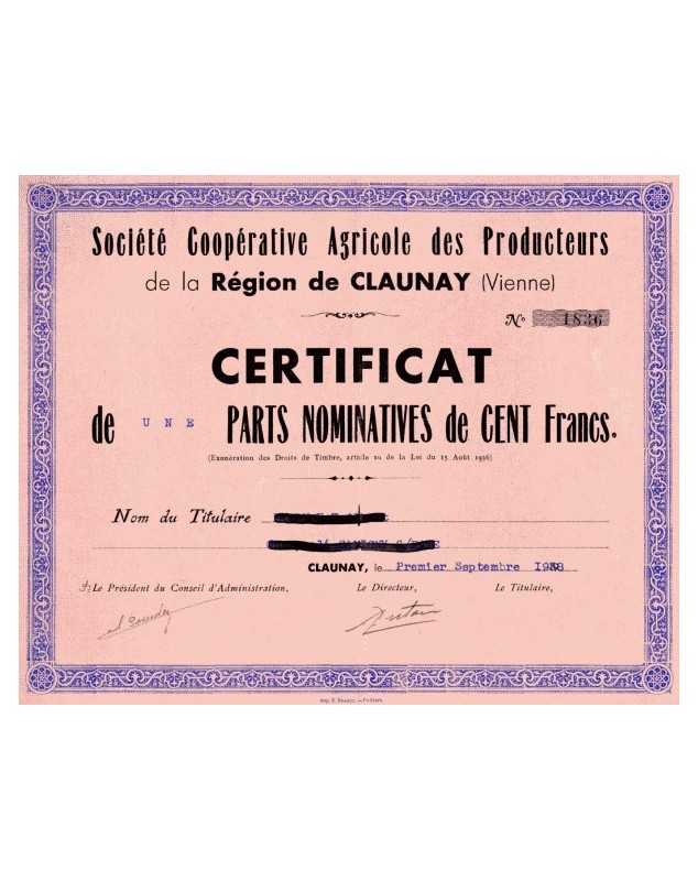 Sté Coopérative Agricole des Producteurs de la Région de Claunay (Vienne)