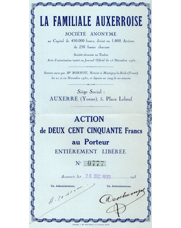 Action de 250F - Auxerre 1932
