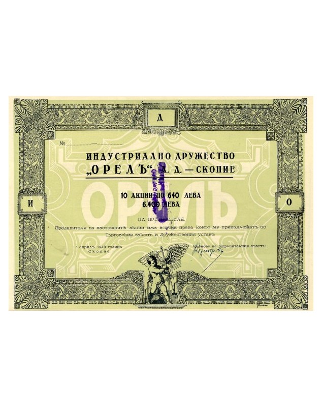 Titre de 10 Actions de 640 Leva chacune - Skopje (Macédoine) 1943